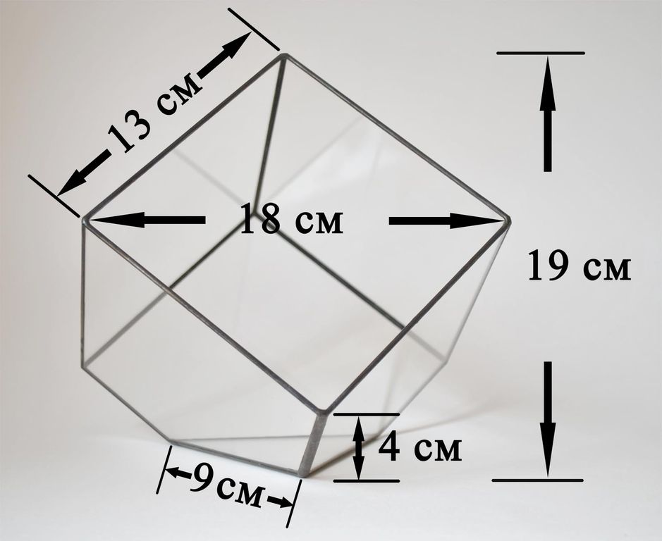Ширина готового флорариума = 18 см.