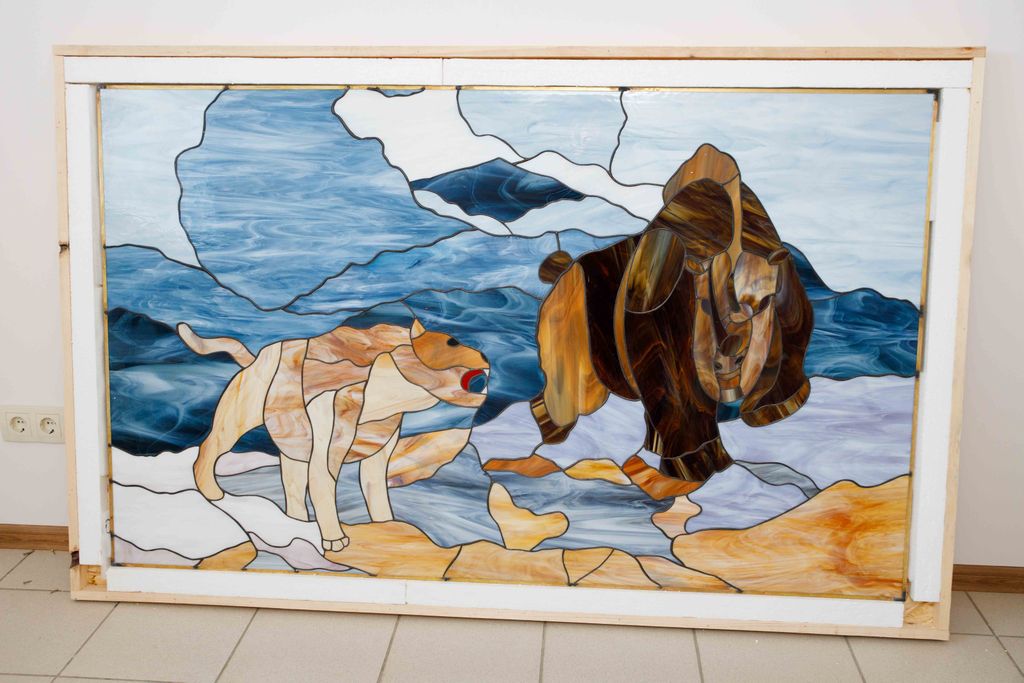 витраж состоит из деталей любой формы, любое количество на кв.м., цвета - без ограничений.